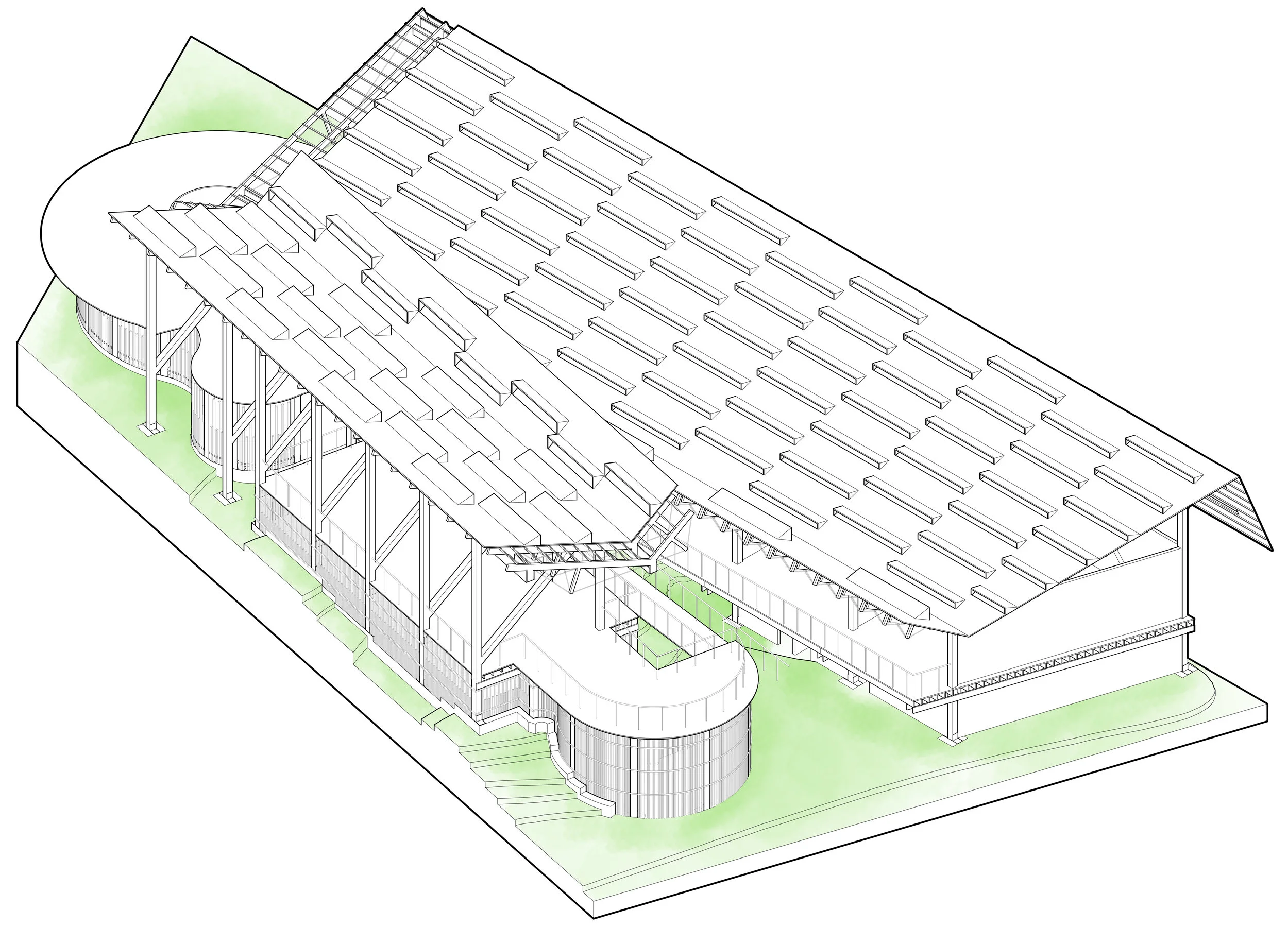 In response to the 2010 earthquake in Haiti, a proposed schoolhouse in Haiti to serve as a primary school and a community center for the neighborhood. The proposed design is also self-sufficient with minimal need for electricity, external plumbing and active heating or cooling.